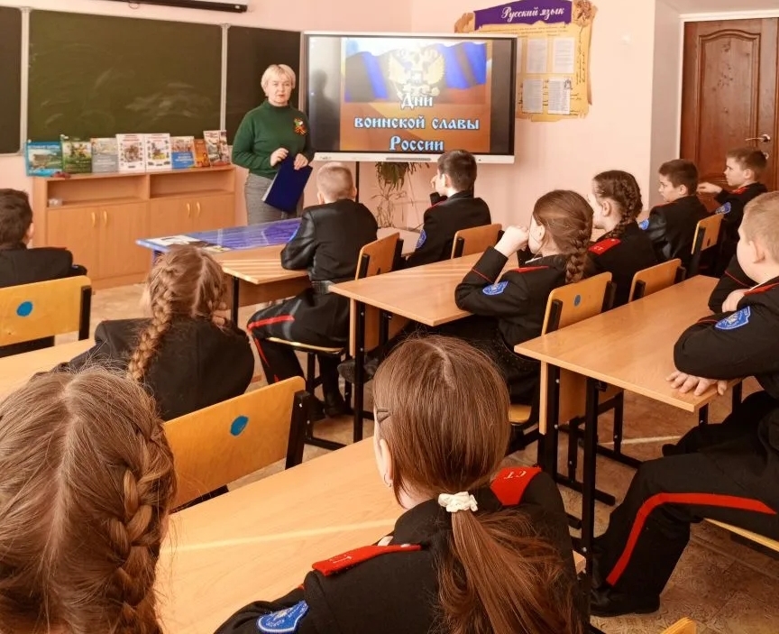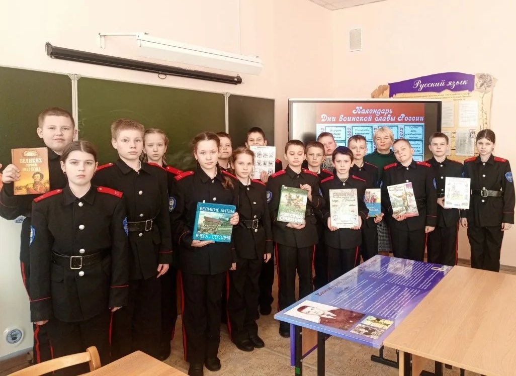 Библиотекарь детской библиотеки побывала в гостях у 5 взвода Стародубского Кадетского корпуса. Накануне Дня защитника Отечества разговор с кадетами шёл о Днях воинской славы.