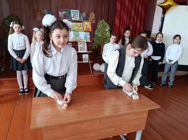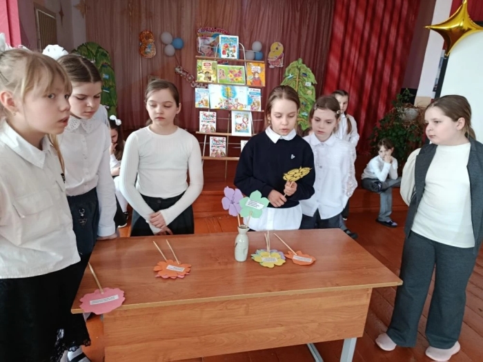 Детям рассказали историю праздника Международный женский день. Ученики прочли добрые стихи о маме и бабушке, а также ответили на вопросы литературной викторины "Сказочные героини". Девочки разбились на команды и приняли участие в конкурсах "Маленькая мама" и "Букет для мамы" . Они пеленали кукол, пели им колыбельные, отгадывали загадки о цветах и выбирали продукты для каши.